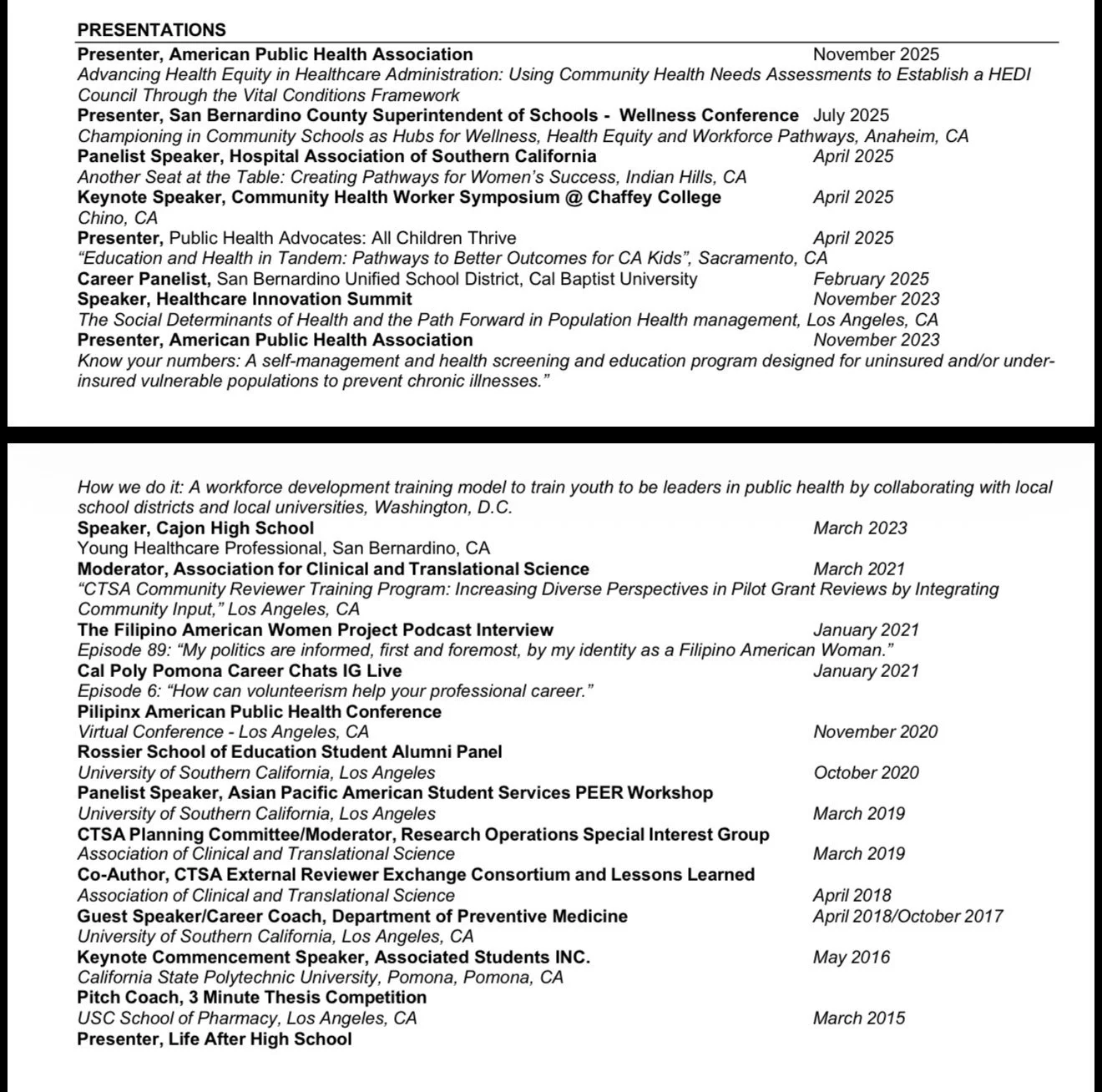 My job title is Associate Vice President of Population Health and Executive Director of a Healthy Communities Institute.
